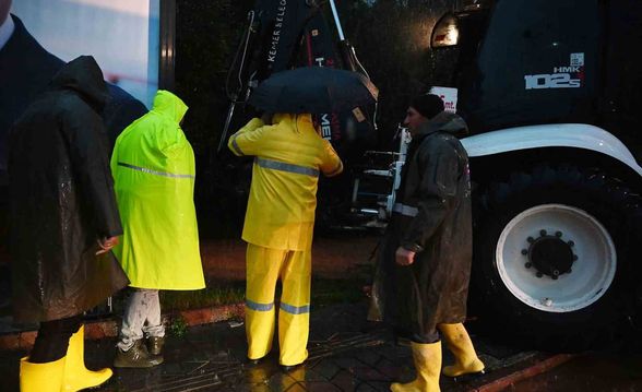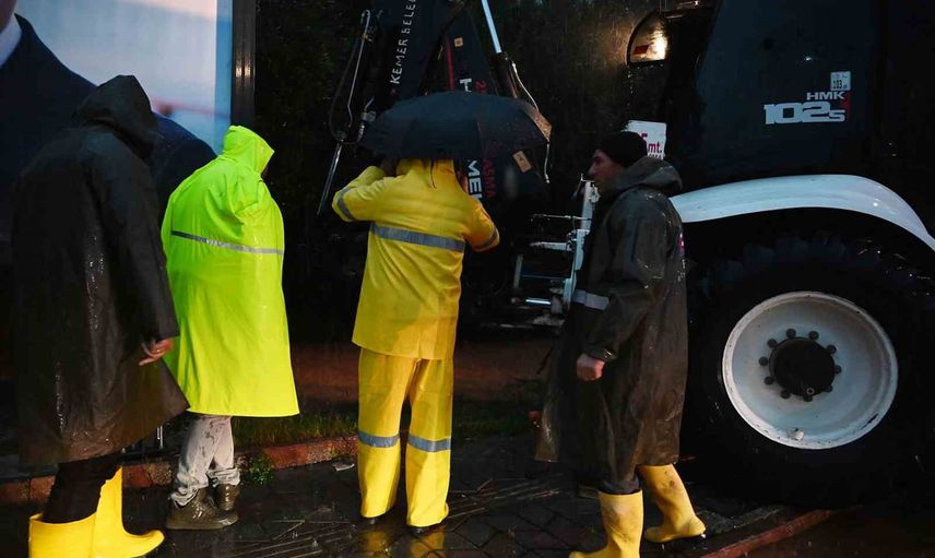Kemer'de etkili sağanak su taşkınlarına neden oldu; Belediye Başkanı Necati Topaloğlu, Mehtap Sitesi'nde mahsur kalan 4 çocuk ve yaşlı kadını kepçe ile kurtardı.