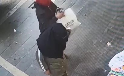 HIRSIZ KADINLAR, YAPTIKLARI VURGUNUN ARDINDAN BİR SOKAK SATICINDA BASKÜLE ÇIKIP TARTILMA ANLARI GÜVENLİK KAMERASINA YANSIDI