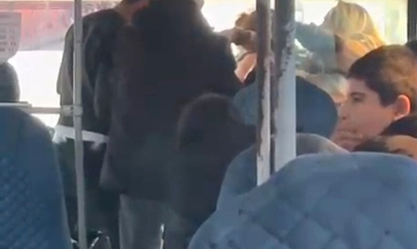 Otobüs içerisindeki yolcuların araya girmesiyle kavga güçlükle sonlandırulurken, yaşanan o anlar cep telefonu kamerasıyla kaydedildi.