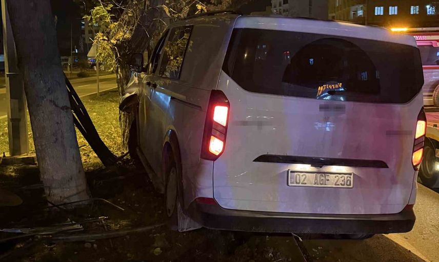 Adıyaman’da Minibüs Refüjdeki Ağaca Çarptı
