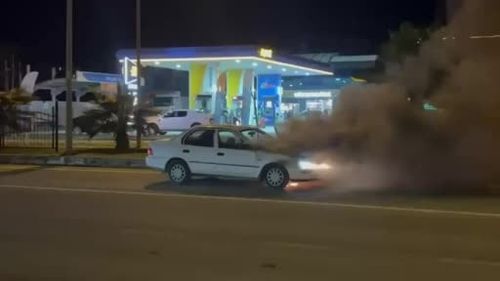 Adıyaman'da Altınşehir Mahallesi yakınında seyir halindeki 02 AAP 674 plakalı otomobil alev aldı; can kaybı veya yaralanma yok, soruşturma başlatıldı.
