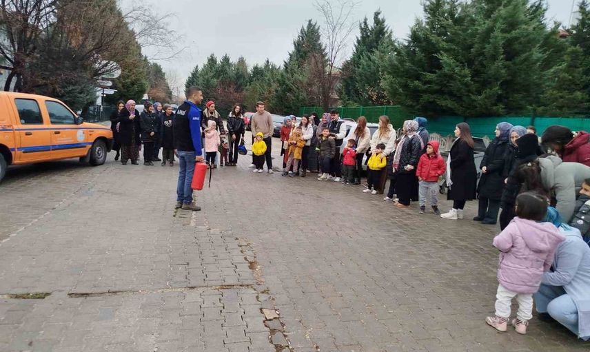 Ekipler, kent genelinde yürütülen eğitim ve tatbikat çalışmalarını sürdürürken, bu uygulama kapsamında merkezin öğrencilerine, ailelerine ve personeline yönelik Afet Farkındalık Eğitimi ile Deprem, Tahliye ve Yangın Tatbikatı yapıldı.