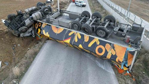 Afyonkarahisar Susuz girişinde yaklaşık 25 ton mandalina yüklü tır devrildi, sürücü yaralandı ve yol yaklaşık 2 saat çift yönlü ulaşıma kapandı.