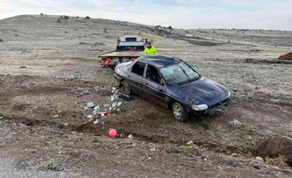 Savrulan araç ardından takla atıp şarampole devrildi. Kazada sürücü ile yanında bulunan 14 yaşındaki bir çocuk yaralandı.