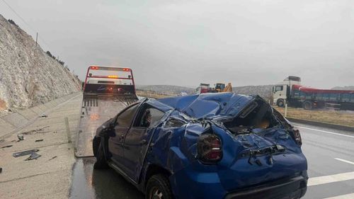 Afyonkarahisar Emirdağ çıkışında kontrolden çıkan 06 DFL 083 plakalı otomobil refüje devrilip metrelerce sürüklendi; sürücü M.B.K. yaralı kurtuldu.