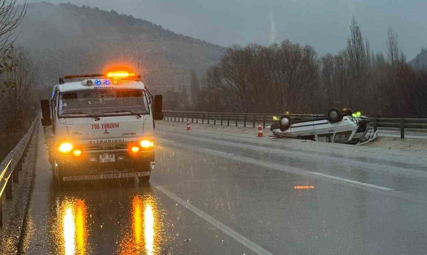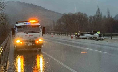 Afyonkarahisar’da kontrolden çıkarak yol ortasındaki refüje devrilen otomobilin sürücüsü yaralandı.