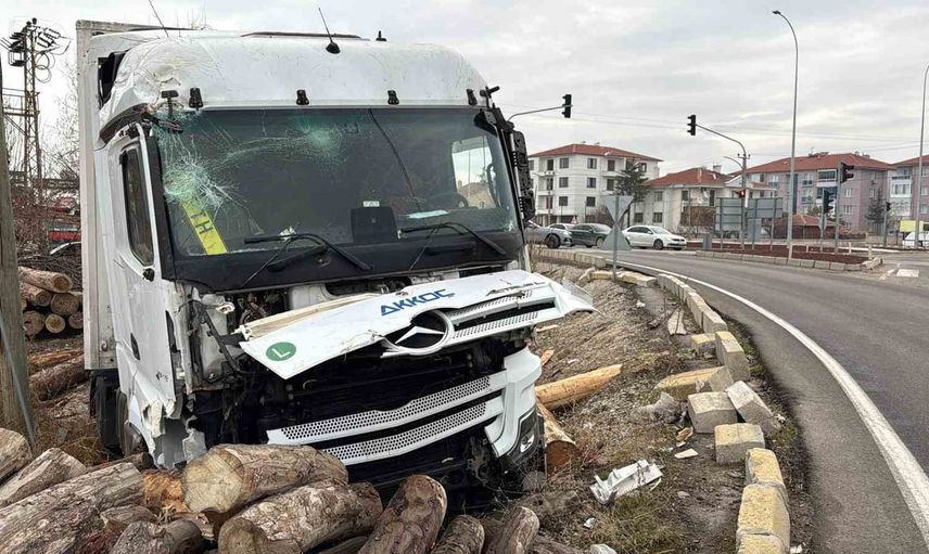 AFYONKARAHİSAR’DA BİR KARGO ŞİRKETİNE AİT TIR KONTROLDEN ÇIKARAK YOL KENARINDAKİ KERESTE FABRİKASININ TOMRUK DEPOSU OLARAK KULLANDIĞI YERE GİREREK DURABİLDİ, KAZADA BİR KİŞİ YARALANIRKEN BÜYÜK ÇAPTA MADDİ HASAR MEYDANA GELDİ.