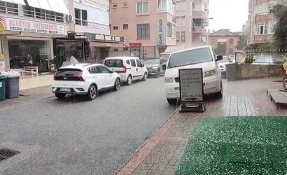 Kısa süre etkili olan dolu, cadde ve sokakları beyaza bürüdü. Vatandaşlar olay anını cep telefonlarıyla görüntüledi.
