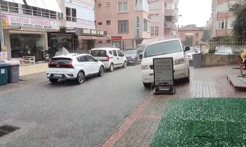 Antalya’nın Alanya ilçesinde akşam saatlerinde etkili olan sağanak yağış, yer yer doluya dönüştü.