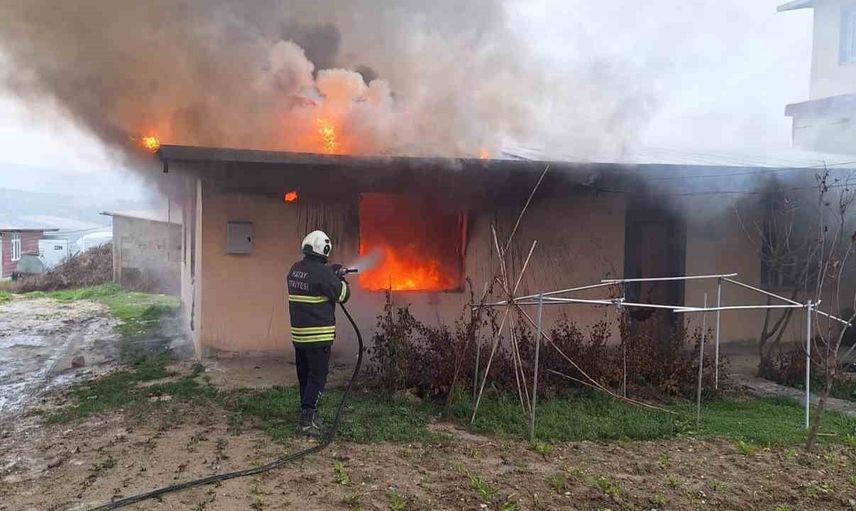 Yangın nedeniyle evde hasar oluştu ve söz konusu yapı kullanılamaz hale geldi.