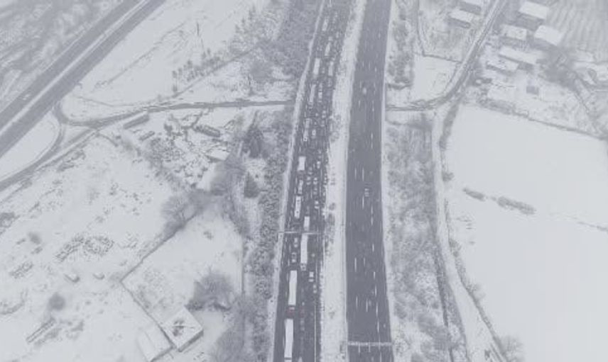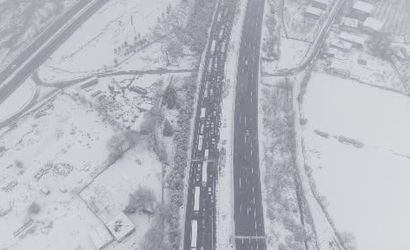 Düzce'deki yoğun kar yağışı otoyolu etkiledi, çalışmalar drone ile görüntülendi