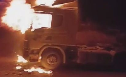 Hatay’ın Antakya ilçesinde akşam saatlerinde seyir halindeyken bir tır bilinmeyen bir nedenle yanarak alevlere teslim oldu.