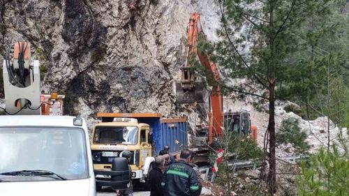 Antalya Büyükşehir ekipleri, Alanya Alacami grup yolunda meydana gelen heyelanı iş makineleriyle temizleyerek yolu yeniden ulaşıma açtı.