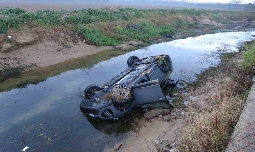 ANTALYA’DA KAYGANLAŞAN YOLDA DİREKSİYON HAKİMİYETİNİ KAYBEDEN SÜRÜCÜNÜN KULLANDIĞI ARAÇ KANALA UÇTU.