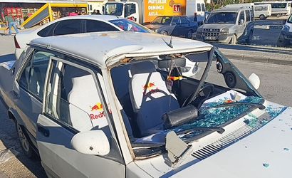 Güvenlik kamerasına saniye saniye yansıyan görüntülerde, viraja hızlı giren otomobilin çarpmanın ardından marketin kepenk ile dış kaplamasını düşürdüğü ve aracın yaklaşık 50-60 metre ileride durabildiği görüldü.