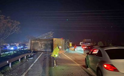 Antalya Serik'te EDS direğine çarpan tır devrildi: 2 yaralı