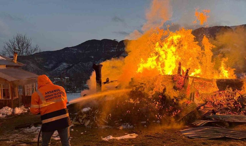 Artvin'in Ardanuç ilçesine bağlı Tosunlu köyü'nde sabah saatlerinde çıkan yangında bir ahır kullanılamaz hale geldi.