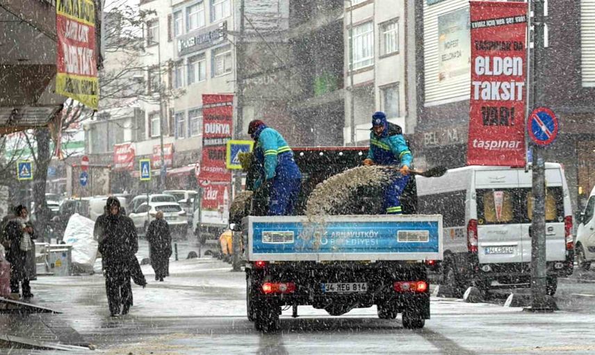 Arnavutköy Belediyesi ekipleri, olası aksaklıkları önlemek ve güvenliği sağlamak amacıyla tedbir amaçlı tuzlama çalışması yaptı.