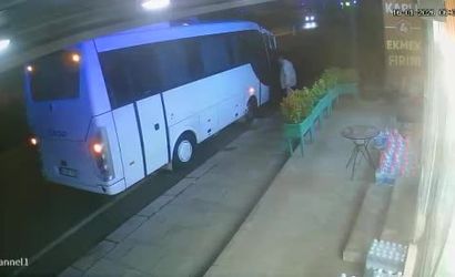 Kaza anı, çevrede bulunan bir iş yerinin güvenlik kamerası tarafından saniye saniye kaydedildi. Görüntülerde otomobilin önce caddeye çıkmaya çalışan ticari araca çarptığı, ardından kontrolünü kaybederek park halindeki servis midibüse çarptığı anlar yer aldı. Öte yandan kazadan hemen önce servis minibüsüne binmeye çalışan bir kişinin, çarpmanın hemen öncesinde araçtan uzaklaşarak son anda kurtulduğu görüldü.