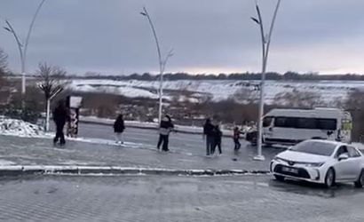 Cadde üzerinde oynayan yaklaşık 10 çocuk, seyir halindeki araçların camlarına kartopu fırlattı. O anları cep telefonu kamerasıyla kayda alan bir vatandaşın görüntülerinde, kartopunun isabet ettiği bir servis aracının şoförünün sinirlenerek aracından indiği ve çocukları kovaladığı anlar yer aldı.