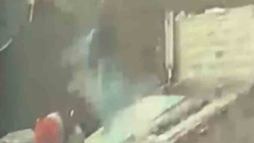 Hatay'ın Arsuz ilçesinde tır dorsesinden yük indirirken yıldırım isabet eden Suriye uyruklu M.A. ağır yaralandı; anlar güvenlik kamerasında.