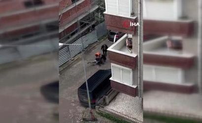 O sırada metrelerce yüksekte çalışan bir işçi, kardeşinin kavga ettiğini görünce inşaat iskelesinden adeta örümcek adam gibi aşağı indi. Aşağı inip eline sopa alan işçinin kavgaya yetişmeye çalıştığı anlar çevredeki güvenlik kameraları tarafından kaydedildi ve kameraya yansıdı.