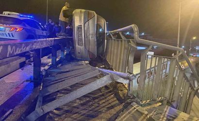 Çarpmanın etkisiyle kontrolünü kaybeden 34 YS 0545 plakalı araç bariyerleri aşarak köprü korkulukları ile bariyer arasında devrildi. Kazada sürücü M.K. ile araçtaki yolcu A.K. yaralandı.