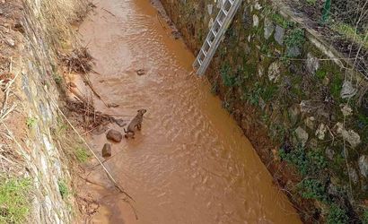 AYDIN'IN EFELER İLÇESİNDE SULAMA KANALINA DÜŞEN KÖPEĞİ AYDIN BÜYÜKŞEHİR BELEDİYESİ İTFAİYE DAİRE BAŞKANLIĞI EKİPLERİ KURTARDI.
