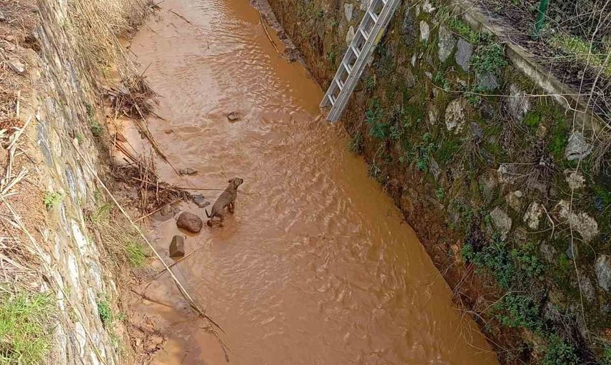 İhbar üzerine bölgeye sevk edilen Aydın Büyükşehir Belediyesi İtfaiye Daire Başkanlığı ekipleri, kısa sürede olay yerine ulaşarak kanala indi ve köpeği kurtardı.