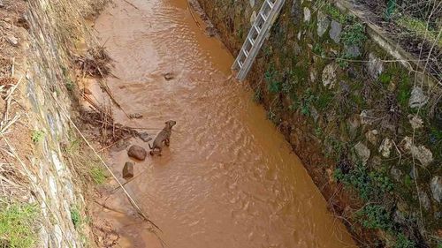 Aydın'da Sulama Kanalına Düşen Köpek İtfaiye Tarafından Kurtarıldı