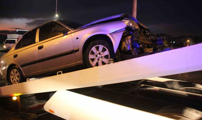 Çarpışmanın etkisiyle savrulan ticari araç refüjdeki trafik levhalarına çarparak yan yatarken, araçlarda bulunan 7 kişi sıkışarak yaralandı. Kazayı gören vatandaşlar durumu 112 Acil Çağrı Merkezi'ne bildirdi.