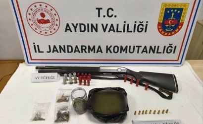 300 gram kubar esrar, 6 gram esrar tohumu, 1 adet ruhsatsız av tüfeği, 9 adet 9 mm tabanca fişeği ve 18 adet av tüfeği fişeği ele geçirildi.