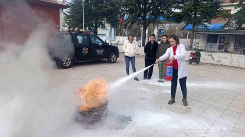 Babaeski'de Büyükmandıra ve Alpullu aile sağlık merkezlerinde sağlık personeline teorik ve uygulamalı yangın eğitimi verildi.