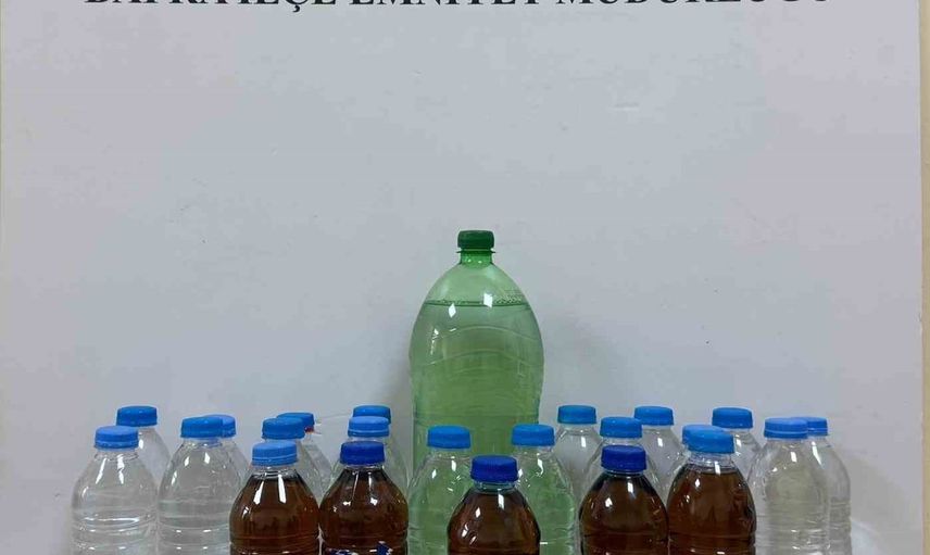 Şüphelilerin üzerlerinde ve ikametlerinde yapılan aramalarda 23 şişe içerisinde toplam 13,5 litre sahte alkol ele geçirildi.