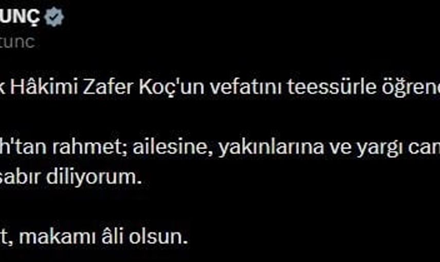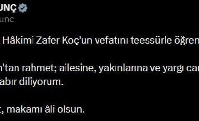 Bakan Tunç’tan Yargıtay Tetkik Hakimi Zafer Koç İçin Başsağlığı