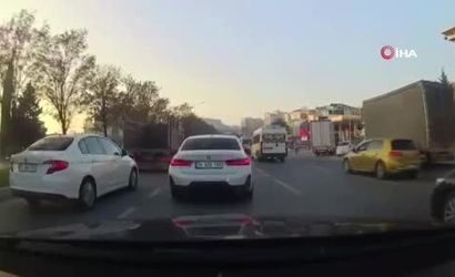 Edinilen bilgilere göre, 34 MVK 953 plakalı motosikletli, yoğun trafikte iki otomobilin arasından geçtiği sırada önüne kırdığı otomobil sürücüsünün kendisine korna çalmasına tepki gösterdi ve aracın yolunu kesti.