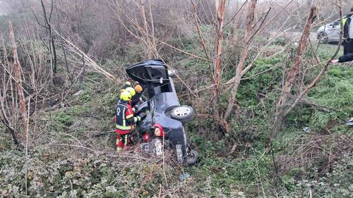 Balıkesir Altıeylül'de 10 KD 825 plakalı otomobilin şarampole yuvarlanması sonucu anne G.Ç. ile kızı M.Ç. yaralandı; ekipler müdahale etti, soruşturma sürüyor.