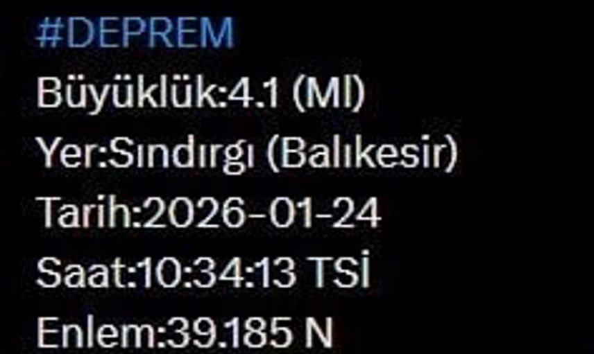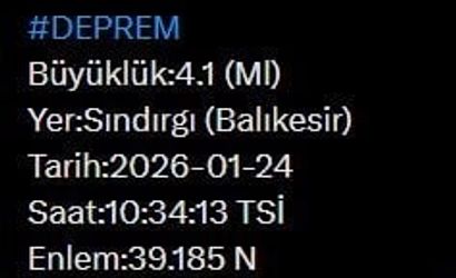 Merkez üs: Sındırgı ilçesi. Saat: 10.34. Büyüklük: 4.1. Derinlik: 10.73 kilometre.