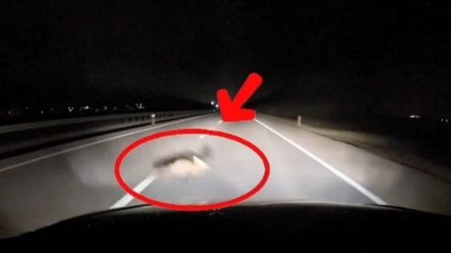 Bandırma-Karacabey yolunda seyir halindeki aracın önüne çıkan tilkiye çarpması, başka zarar yaşanmadan araç kamerasına yansıdı. Yetkililer sürücüleri uyardı.