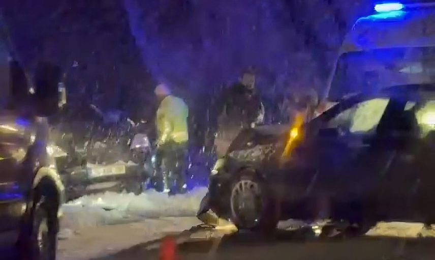 BARTIN'DA KARLI YOLDA KAYAN ARAÇ, KARŞI ŞERİTTEN GELEN ARAÇLA ÇARPIŞTI. KAZADA 6 KİŞİ YARALANDI.
