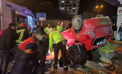 BARTIN'DA POLİSTEN KAÇAN BİR OTOMOBİL TAKLA ATTI. 3 KİŞİNİN YARALANDIĞI KAZADA ARAÇTA SIKIŞAN BİR KİŞİ İTFAİYE EKİPLERİ TARAFINDAN KURTARILDI