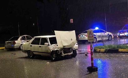 Olay yerindeki değerlendirmelere göre, seyir halinde bulunan otomobil sürücüsünün yağış nedeniyle kayganlaşan yolda duramaması sonucu kavşaktan çıkan araca çarptığı ileri sürüldü.