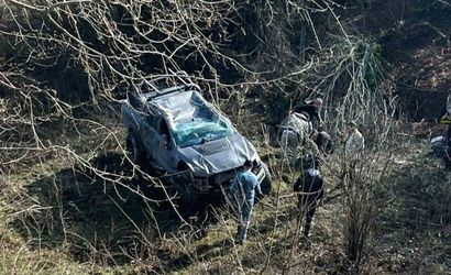 Kazada büyük hasar gören araç, vinç yardımıyla düştüğü ormanlık alandan çıkarıldı.