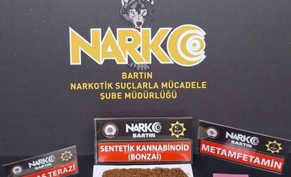 Aramalarda 23,40 gram sentetik kannabinoid maddesi, 4,46 gram metamfetamin maddesi ve 1 adet hassas terazi ele geçirildi.