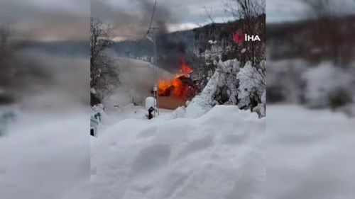 Bartın Ulus’a bağlı Isırganlı köyünde Ahmet Çiftçi’ye ait tek katlı evde bacadan çıkan kıvılcımlarla yangın çıktı; 120 cm’i aşan kar ve tipi müdahaleyi zorlaştırdı.