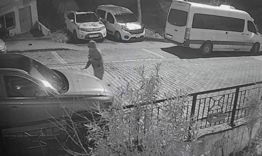 Olay, 03.50 sıralarında gerçekleşti. Güvenlik kamerası görüntülerinde yüzü kapalı bir kişinin sokağa girip park halindeki araca defalarca levye ile vurduğu, aynaları ve camları kırdıktan sonra tedirgin bir şekilde koşarak kaçtığı görülüyor. Saldırı sonucu araçta ciddi maddi hasar oluştu.