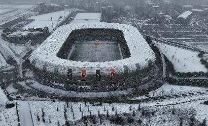 Kartpostalı aratmayan karelerde Başakşehir Stadyumu, çevredeki evler ve sokakların yoğun karla kaplandığı görüldü.