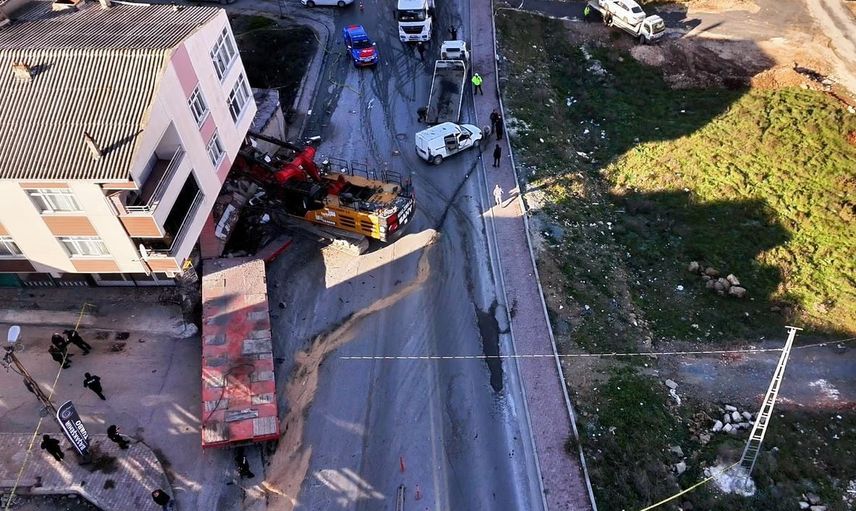 Başakşehir Gökdemir Mahallesi'nde öğle saatlerinde meydana gelen kazada, iş makinesinin çektiği tırın arkasında taşınan bir vinç yola düşerek iki araca ve bir binaya çarptı. Olay, mahallede kısa süreli paniğe neden oldu.