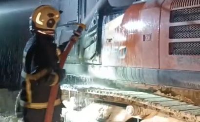 BATMAN'DA BİR İŞ MAKİNESİ HENÜZ BİLİNMEYEN BİR NEDENLE ALEV ALDI. İTFAİYE EKİPLERİNİN MÜDAHALESİ İLE YANGIN SÖNDÜRÜLDÜ.