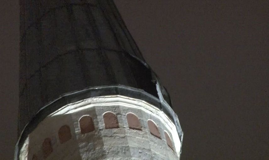 Fatih Beyazıt Mahallesi'nde bulunan tarihi Beyazıt Camiinin minaresinin üst kısmındaki kurşun kaplama, etkili olan lodos nedeniyle yerinden çıktı.